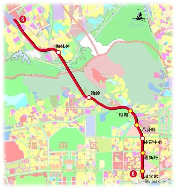 地铁6号线二期线路自深圳北站预留高架桥工程引出,途经龙华、福田、罗湖三区,终于科学馆站。