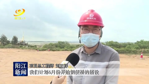 4月22日,广东省滨海旅游公路阳江先行段海陵大堤至溪头段正在进行便桥搭设前期工作,下个月将启动高新区海堤边桥梁桩基施工,拉开控制性工程阳江港特大桥施工序幕。
